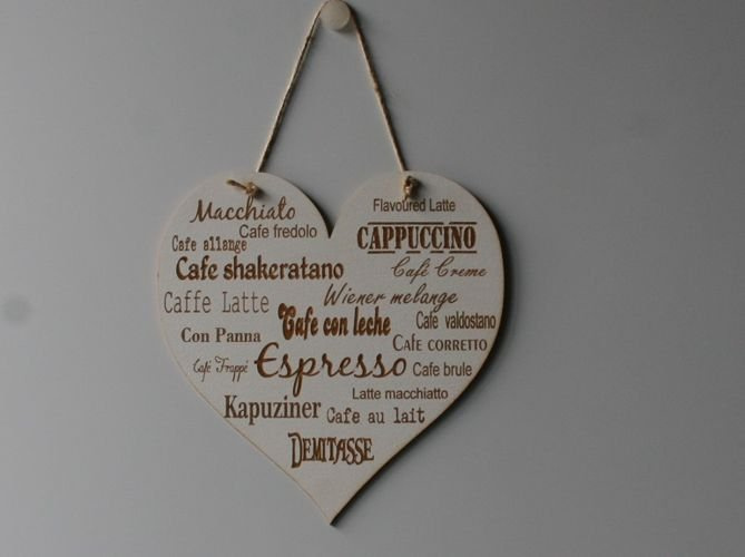 • Drewniana zawieszka serce  23X23 cm Kawa