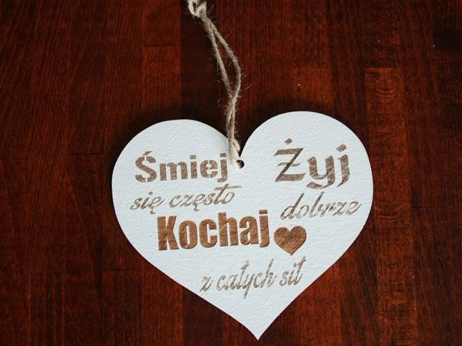Drewniana zawieszka serce 23X23 cm Śmiej się, Żyj, Kochaj