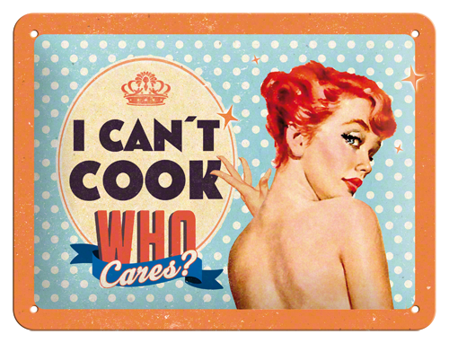 • Metalowy mały szyld blacha tin signs Nie umiem gotować i kogo to obchodzi? Prezent