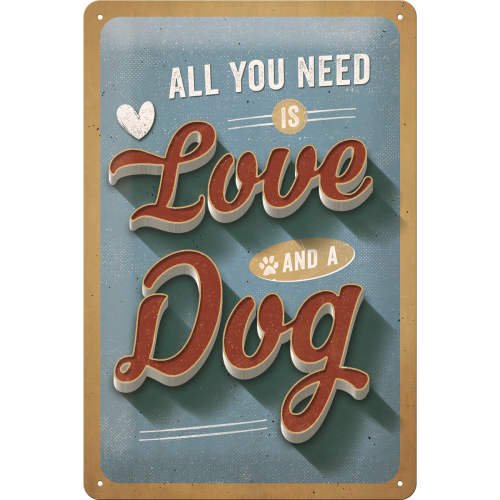 • Metalowy plakat reklamowy Kocham psy 20x30 cm