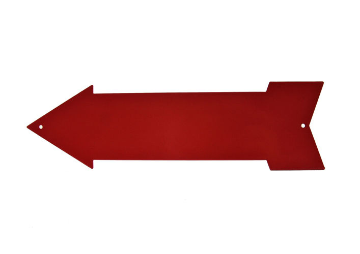 Pierwowzorem strzałki był metalowy szyld Tin sign. Tin signs, znane w Europie jako metal signs lub metal pins były powszechnie używane w USA jako reklamy sklepów, salonów i serwisów samochodowych lub motocyklowych, restauracji, przydrożnych moteli. Najbardziej znane amerykańskie firmy używały tin signs do reklamowania własnych produktów w punktach sprzedaży. Metalowe szyldy tin signs stopniowo wyparte zostały z rynku przez neony reklamowe i ekrany LED.