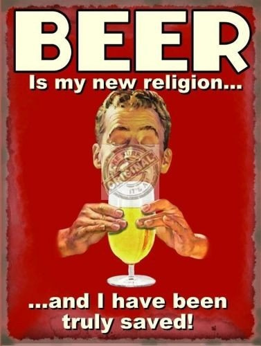 • Metalowy plakat reklamowy blacha tin sign humor USA Piwo jest moją religią Prezent