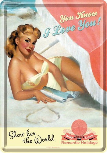 Wyprodukowana w Niemczech w manufakturze legendarnej Nostalgic-Art Merchandising GmbH w Berlinie metalowa kartka pocztowa wzorowana na plakacie tzw. tin sign z motywami z lat 50-tych XX wieku.