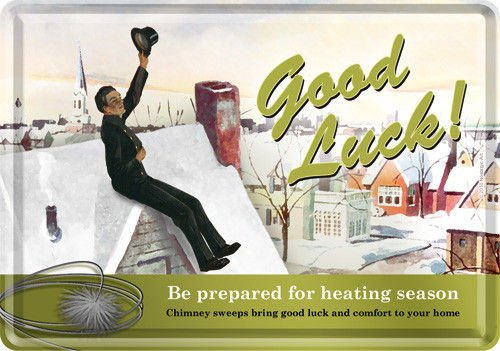 Metalow mini szyld Powodzenia. Bądź przygotowany na sezon grzewczy. Kominiarz przyniesie Ci szczęście.