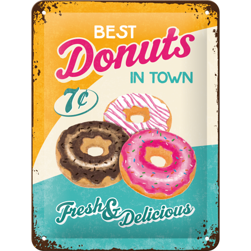 • Metalowy plakat mały szyld tin sign Najlepsze pączki w mieście. Swieże i wyborne