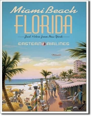 Metalowy szyld plakat reklamowy blacha tin sign USA Lataj do Miami Beach liniami Eastern Airlines